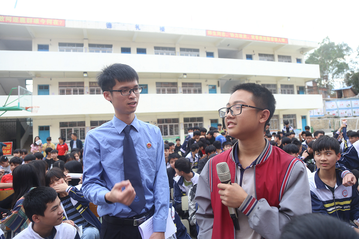 寒假将至,春节来临之际,龙圩区检察院的检察官们来到位于新地镇的新地初中,正式开启该院“2020七彩桥法治进校园”系列巡讲活动,针对学生在寒假前、春节前加强重要节点法治宣传教育。该校1000余名师生参加了活动。