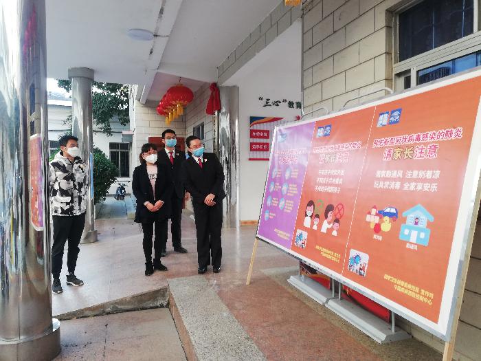 林婷婷现场察看了校园宣传板报、防疫用品储备及防控工作措施落实等情况。针对部份家长、孩子缺乏防疫知识,法治意识较弱的问题,提出建议:希望建立起检校网络沟通渠道,及时将疫情信息及相关法律推送给学校,学校通过班级群发送给学生、家长,传播正确的防疫信息,有力抗击网络谣言。