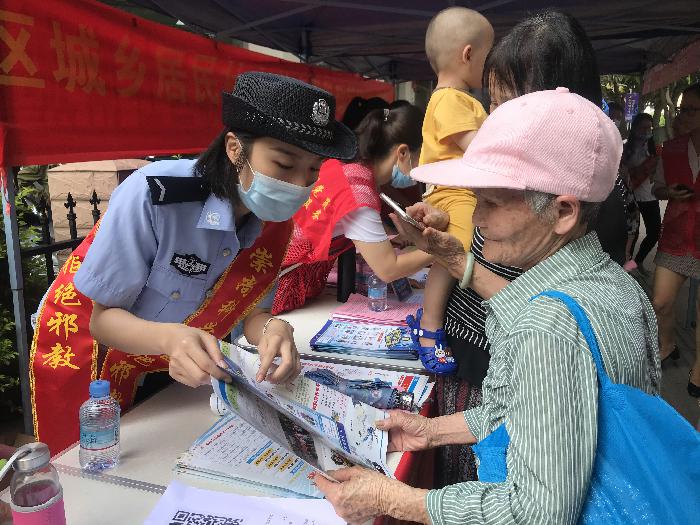 5月15日上午,在世纪广场,分局网安、经侦、国保大队、城西派出所联合龙圩镇政府,通过发放反邪教宣传资料,耐心细致地向群众讲解“什么是邪教、邪教有哪些特征、危害以及如何防范和处置邪教等常识”。