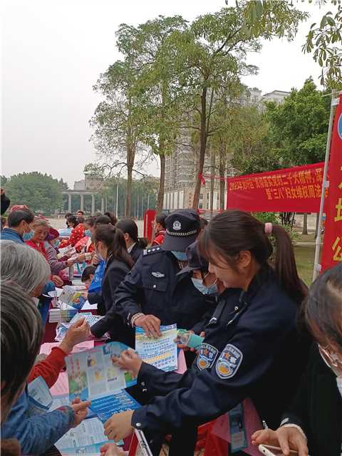 由区司法局、区妇联主办2023年龙圩区“贯彻落实党的二十大精神,深入实施‘谁执法谁普法’普法责任制”暨“三八”妇女维权周法治集中宣传活动在世纪广场拉开帷幕。活动中,47个成员单位参加了本次宣传活动,龙圩分局民辅警通过仿真毒品样品向群众介绍禁毒知识,引导群众警惕毒品,辨别毒品,远离毒品。活动现场,民辅警还向民众派发了禁毒宣传单、购物袋、水杯等有关禁毒知识的物品,号召广大人民群众远离毒品,尊法守法,提高自身防范意识,警惕新型毒品的陷阱和危害。