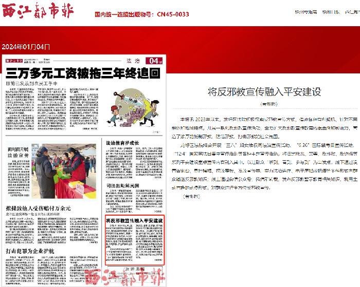 2023年以来,龙圩区人民法院积极探索反邪教宣传方式,借助各种有利契机,针对不同群体和地域特点,开展一系列反邪教宣传活动,全力扩大反邪教宣传教育的覆盖面和影响力,营造了浓厚的抵制邪教、防范邪教、打击邪教的社会氛围。