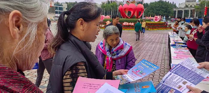 近日,龙圩区委政法委在世纪广场开展提升群众安全感满意度宣传活动。