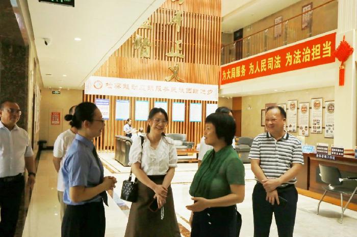 龙圩区人大调研组分别参观了区检察院的12309检察服务中心、“七彩心桥”未成年人检察工作室和视频审讯、视频接访等场所。在12309检务接待大厅,区检察院第三检察部主任李玲通过使用12309网络接访等形式,向调研组演示12309检察案件信息公开平台的操作流程。