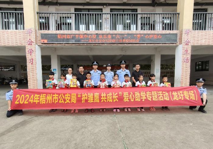 5月31日上午,龙圩公安分局组织民辅警到广平镇中心校开展“护雏鹰 共成长”爱心助学暨法制宣传进校园活动。