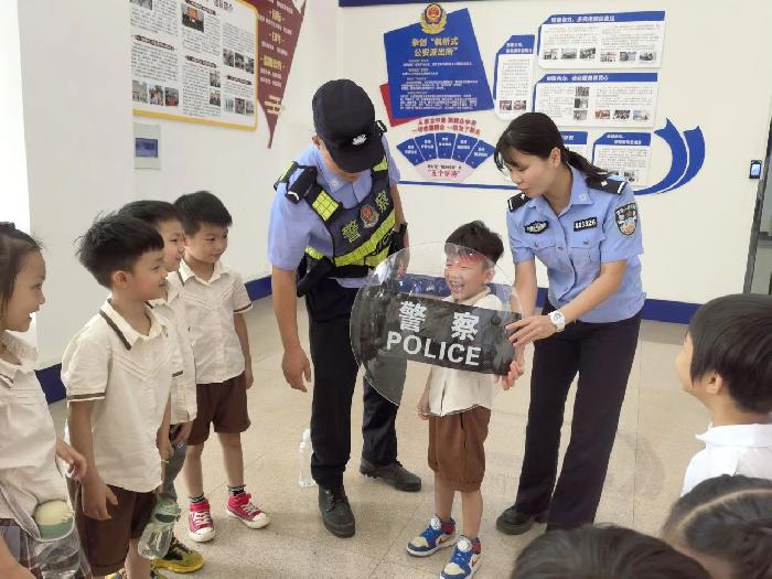 在民警的指导下,小朋友们争先恐后排队体验戴头盔、举盾牌等,过足了“警察瘾”。同时,民警还通过案例讲解与播放动画视频的方式,讲授防拐卖、防溺水、防诈骗等知识。“谢谢警察叔叔!今天我们很开心,学到了很多知识!”“长大了我也想当警察。”小朋友们纷纷说道。在本次“警营开放日”体验活动中,不仅提高了小朋友们的自我保护意识,也提高了他们的正义感和责任感。
